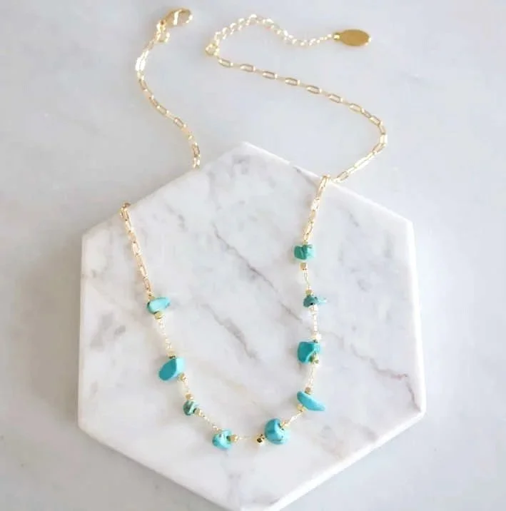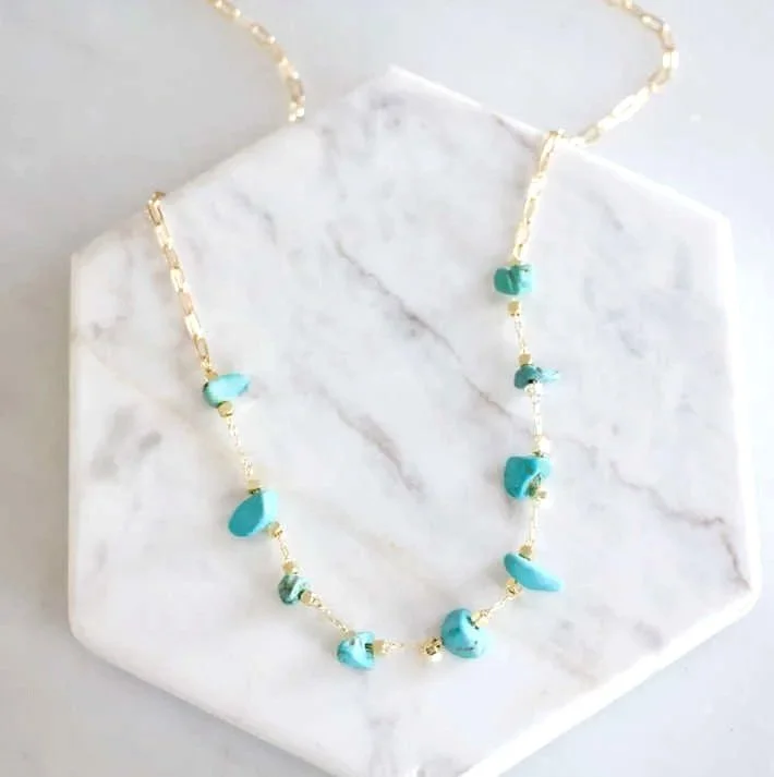 Blue Goldstone Teardrop Necklace - WITH PAVE